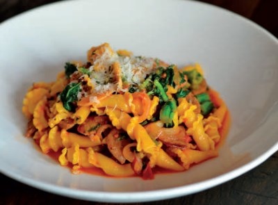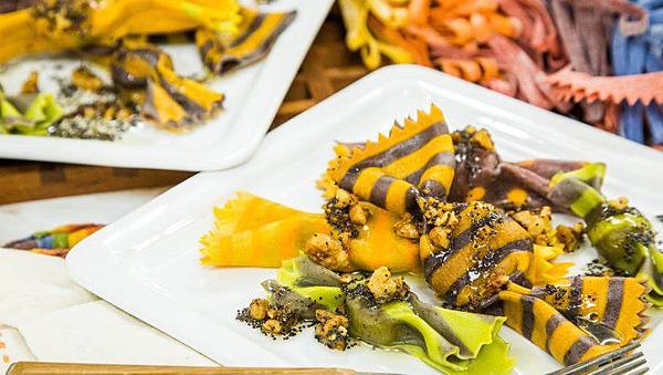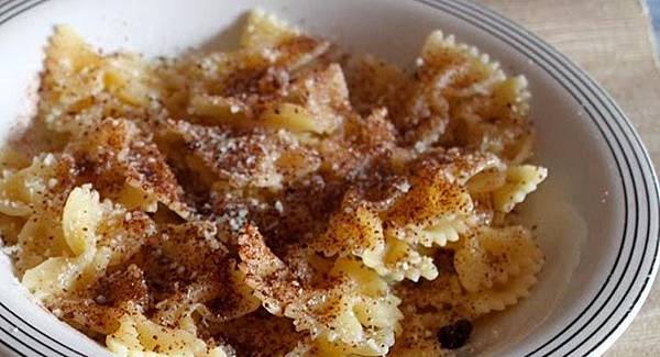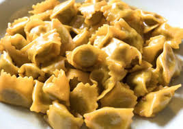 「蝴蝶麵」(farfalle)又叫領結麵,是這個大區的代表麵款,而farfalle就是義大利文的蝴蝶 (發音為far-FALL-ay)。比較大的叫farlloni,較小的版本叫farllline,是需要用手搓的義大利麵之中最容易製作的。而其中央的皺摺則不但可以讓煮過的麵有特別彈牙的口感,還可以盛住一些醬汁。