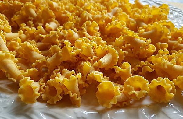 不過百合花麵多流行於義大利本地,這種麵出口的話則多以「風鈴花麵」(campanelle)之名出口。這種用有波浪形花邊的麵皮搓成錐形螺旋狀的賞心悅目的麵款,可說是外型最每的義大利之一。不單如此,它的螺旋狀造型更能夠在食用時盛住醬汁。