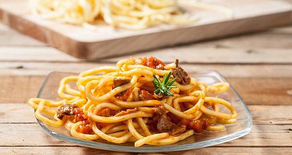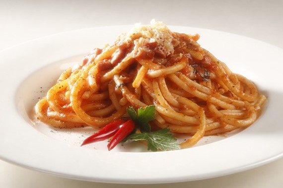 在羅馬很流行的「辣味培根茄汁吸管麵」(bucatini all’Amatriciana)是這種麵最出名的料理。辣味培根茄汁吸管麵的醬汁Amatriciana源自於阿瑪翠斯 (Amatrice)這個距離羅馬100英里的地方。而這道料理許多人認為是由一道由醃的豬頰肉(guanciale,如果沒有的話可用醃五花肉pancetta取代)、起士與黑胡椒做成的義大利麵gricia演變而來的。