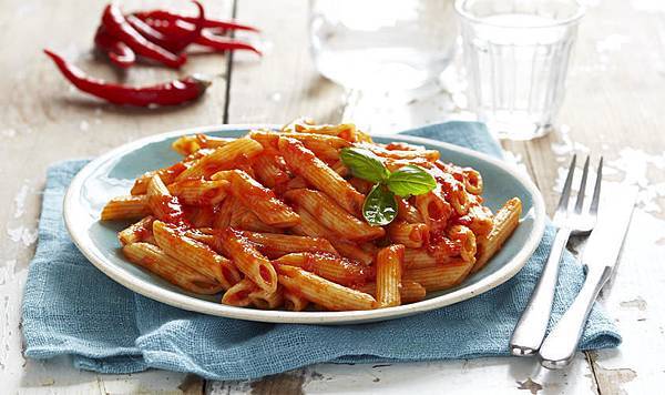 辣味茄汁醬arrabbiata的做法是先以橄欖油煎蒜片到香之後,加入辣椒末、蕃茄泥、鹽,然後在保持微滾的狀態下煮至醬汁變濃和不稠的狀態時再補些鹽,然後離火加入羅勒葉就完成了。