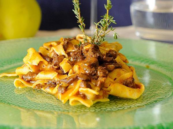 在托斯卡尼,搭配百合花麵的代表醬汁為鹿肉茄汁醬。除此之外,奶油醬汁或是以蔬菜為基底的醬汁也非常適合。