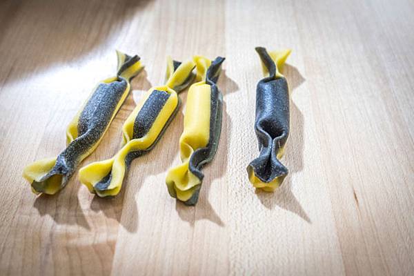 但是筆尖麵不同,它有著它精確的誕生日:1865年的3月11日。1865年的3月11日,喬凡尼.巴提斯塔.卡普羅歐(Giovanni Battista Capurro),一位熱內亞附近的聖馬丁諾.阿巴諾(San Martino d’Albano)這個地方的製麵師傅,成功地申請到一個能夠斜向切割麵團而且麵體不會破碎的切麵機的專利。在這天之前,人們只能用剪刀來幹這個活。不過那時的筆尖麵是有顏色的,因為添加了蕃紅花。