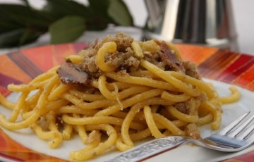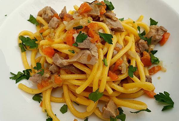 傳統上,弦麵都被搭配燉羔羊肉來吃。而這道鄉土氣息濃厚的義大利麵款由於製作簡單,又和切成絲的蔬菜非常搭,因此受到許多義大利料理的廚師喜愛。
